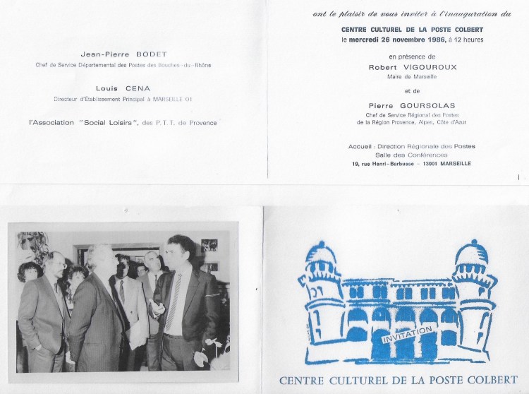 C’est ainsi que Le CENTRE CULTUREL de La POSTE vit le jour avec l’aide active de l’Association de Personnel : SOCIAL LOISIRS PTT PROVENCE, dont René SARBIB fut le créateur et le 1er Président.