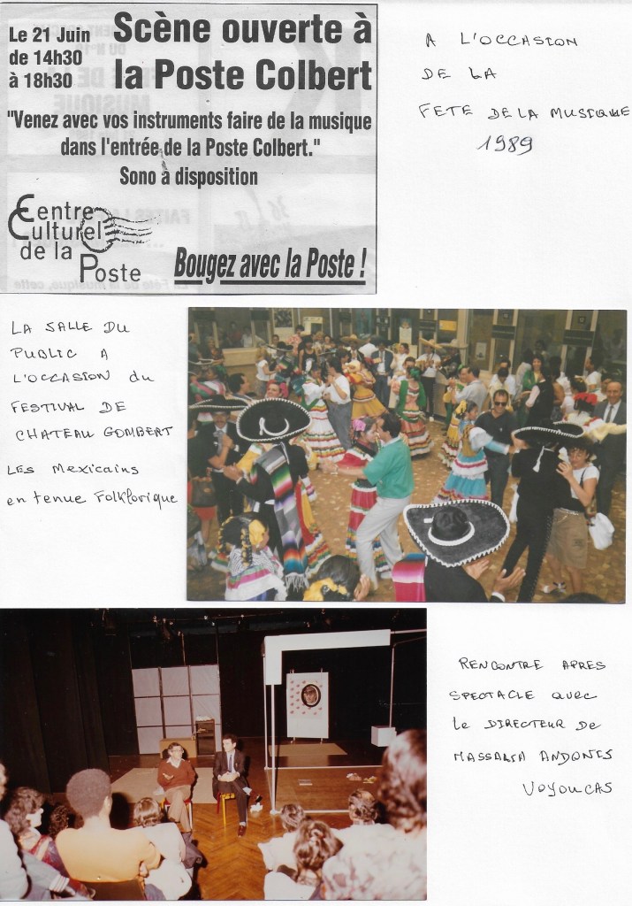 Quant à Château Gombert qui proposait chaque année son Festival de Musique du Monde il vint se produire en fin de matinée, sur le parvis de la Poste et dans la grande salle du public de Marseille 01 devant les clients médusés :Parmi les troupes invitées, il y eut :« Les Tambours du Bronx et les Mexicains en tenue traditionnelle avec sombreros et robes longues aux couleurs vives …
