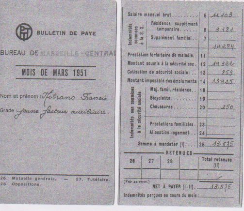 Jeune facteur, c’est un métier tombé dans l’oubli et devenu obsolète depuis l’apparition de nouveaux modes de communication. J’y pense avec une certaine nostalgie, la nostalgie de mes 20 ans. Après le Télégraphe et un certain concours d’AEX, j’ai continué dans. les PTT avec les Ambulants de la Méditerranée et le Centre de tri de Marseille Gare, en jour, en nuit et toujours en compagnie d’excellents camarades venus d’horizon divers auprès desquels je me suis aguerri et enrichi par de liens sociaux, par le travail et aussi par mon engagement syndical.